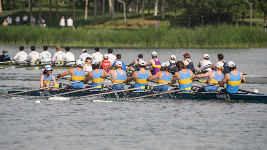 经过一番角逐,台湾中国文化大学、香港科技大学、清华大学获得5.1km环湖赛甲组八人单桨项目的冠亚季军,奥塔哥大学、剑桥大学、黄河科技学院获得5.1km环湖赛乙组八人单桨项目的冠亚季军,布达佩斯技术大学&体育运动与科技大学、维也纳大学、莱顿大学获得500m直道赛大学组男子双人单桨项目的冠亚季军。作为第二次赛事冠名的东道主河南经贸职业学院赛艇队,今年继续派出12支学院队伍参赛,与国内外名校队伍开展激烈交锋,取得了不俗的成绩,更是包揽了5.1km环湖赛大学组混合甲组八人单桨有舵手项目的冠亚季军。