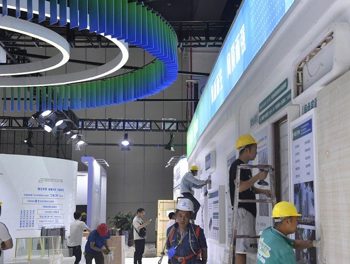 今日上午,记者在博览会展区看到,现场共设立中国城科会展区、城市成果展区、科技创新展区、智能建造展区、绿色低碳展区、城市更新展区、好房子展区七大板块展区。“本次展会吸引了中国生态城市研究院、远大科技等业内知名的研究院企业,不但可以促进业内人士的交流合作,市民朋友们也可前来了解建筑行业最新的发展方向和成果。目前,各展厅布展工作顺利,确保以最好的状态迎接广大的嘉宾和观众。”该博览会中建七局城投公司现场负责人告诉记者。