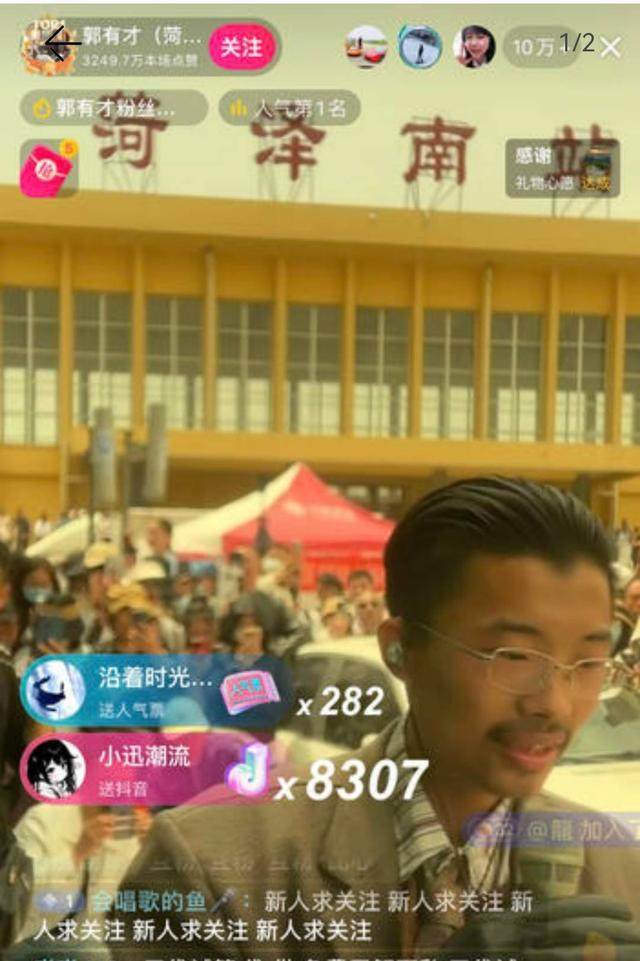 5月11日上午,在菏泽树哥郭有才的带动下,原本沉寂的菏泽南站人潮涌动,游客蜂拥而至,《诺言》等歌曲缠绕在人们心头,共鸣之音经久不息。全国各地的网络主播也不远千百里赶赴现场,为励志青年郭有才助阵。