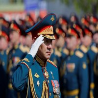 当地时间2024年5月9日,俄罗斯莫斯科,俄罗斯纪念卫国战争胜利79周年阅兵在红场举行。图为谢尔盖·绍伊古。