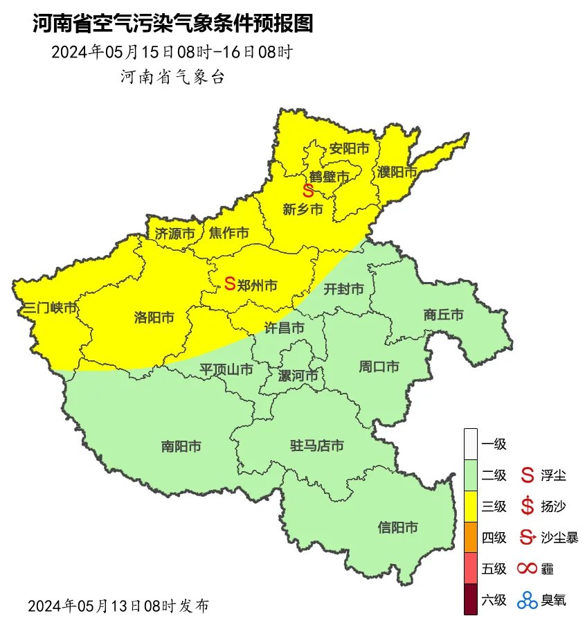 14日傍晚至15日河南有大风天气,北部东部有雷阵雨