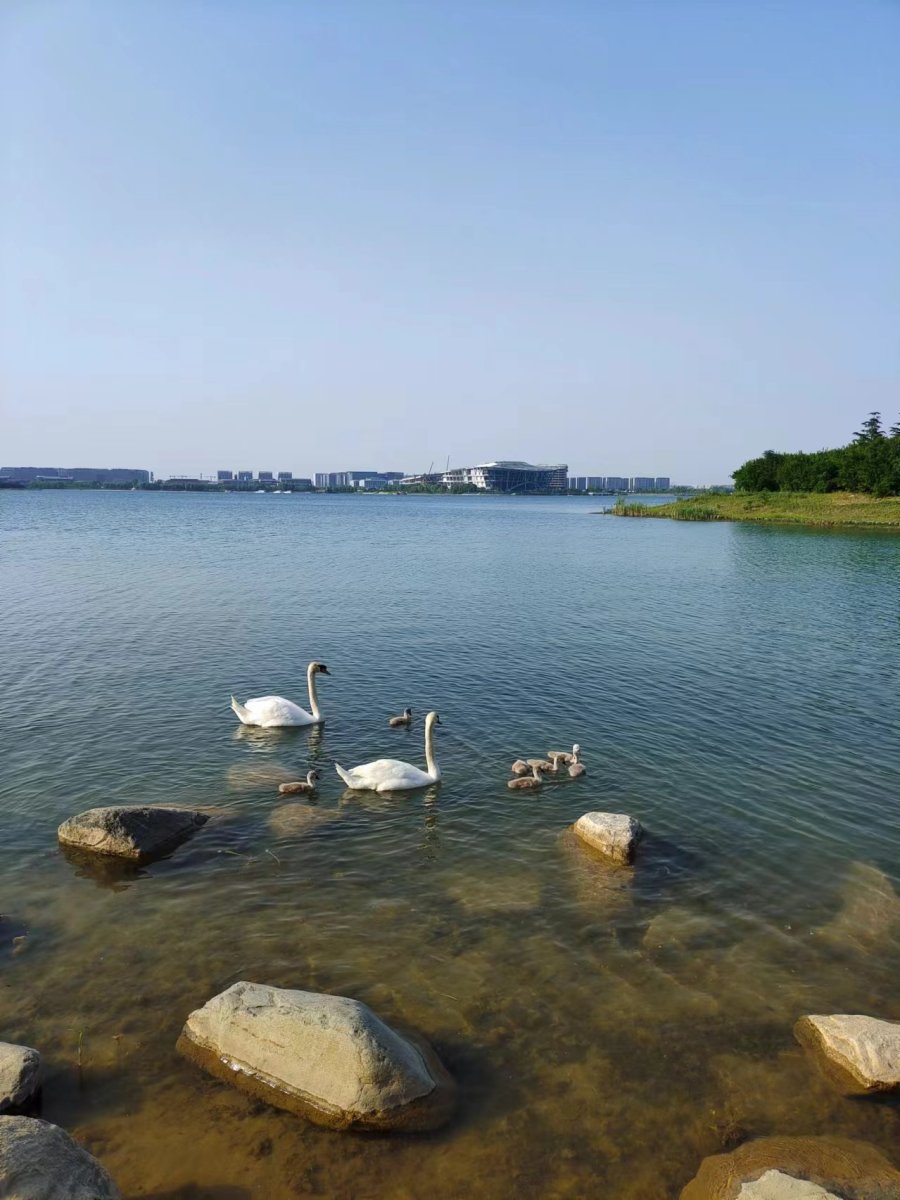 5月,天鹅家族迎来新成员,在北龙湖湿地公园常常可以看到天鹅爸爸、天鹅妈妈领着灰色的天鹅宝宝游弋觅食。可天鹅多了,烦心事也多。由于天鹅具有很强的领地意识,这就经常导致强势的天鹅欺负弱势的天鹅。