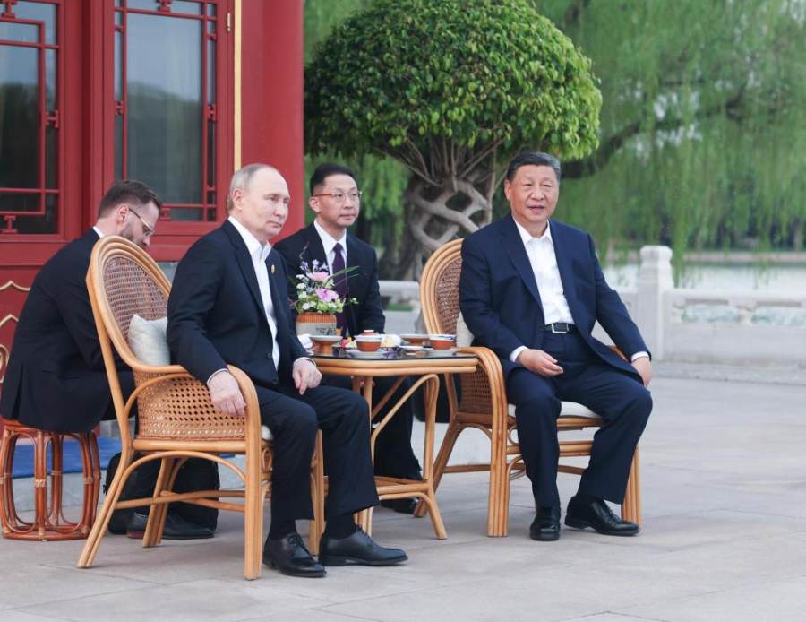 5月16日晚,国家主席习近平在北京中南海同俄罗斯总统普京举行小范围会晤。新华社记者 岳月伟 摄