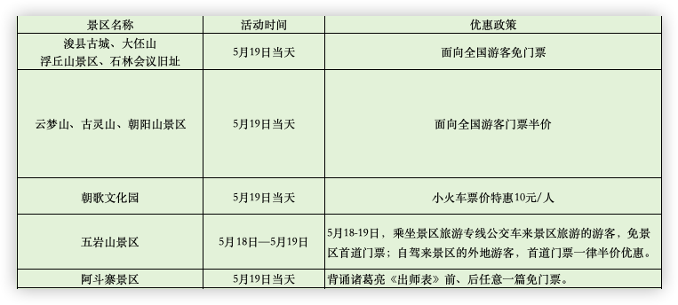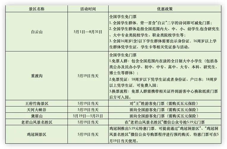 (各景区的优惠政策以景区官方发布为准)