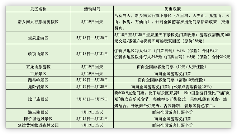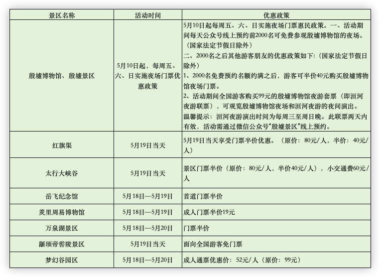 老家河南准备了丰富的文旅惠民措施,