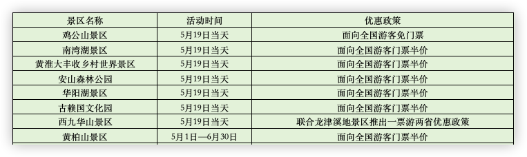 各种门票免费、折扣入园活动,