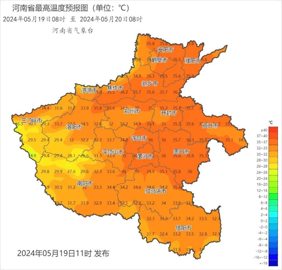预报来源:河南省气象台2024年5月19日12时预报