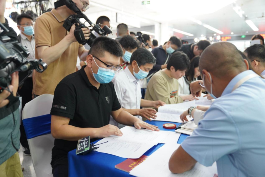 5月10日,郑州举行二手住房“卖旧买新、以旧换新”集中签约仪式,换房群众代表、房地产企业代表与郑州城发安居公司共同签约。