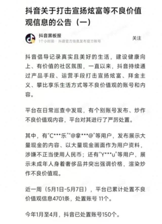 斩断“炫富拜金”毒流量!多名网红被全平台封禁