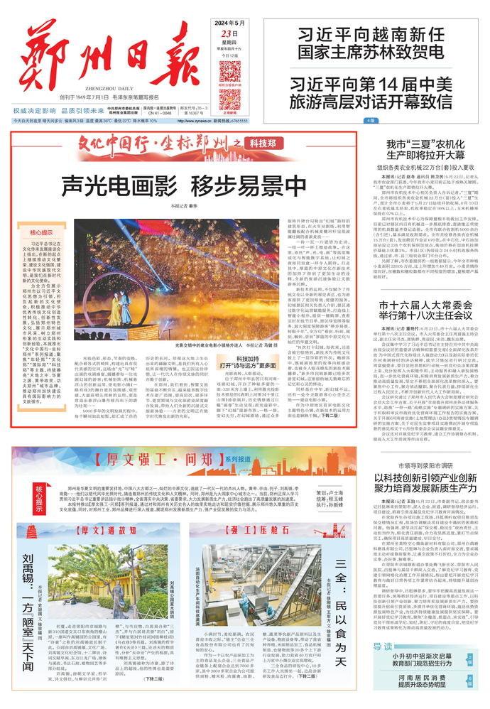 为全方位展示郑州市以习近平文化思想为引领,担负起新的文化使命,积极推动中华优秀传统文化创造性转化、创新性发展,弘扬郑州特色文化、展示郑州城市风采、树立郑州形象的生动实践和创新经验,本报推出“文化中国行·坐标郑州”系列报道,聚焦“年轻郑”“文化郑”“国际郑”“科技郑”等主题,持续擦亮“天地之中、华夏之源、黄帝故里、功夫郑州”城市品牌,推动郑州加快建设具有国际影响力的文旅强市。