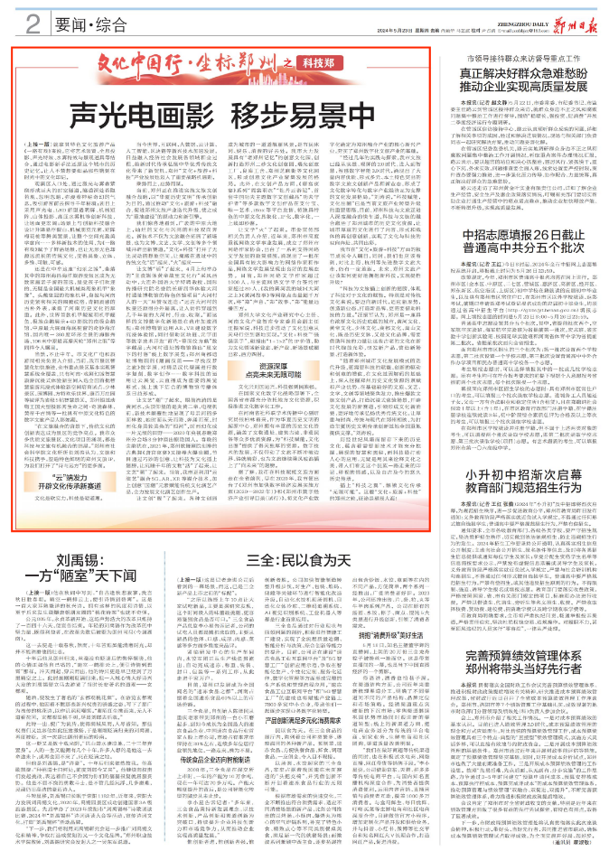 据了解,我市在科技赋能文旅方面走在全省前列,早在2020年,我市便出台了《郑州市加快数字经济发展实施方案(2020—2022年)》和《郑州市数字经济产业引导目录(试行)》,将文化产业数字化确定为郑州融合产业的核心新兴产业,夯实了郑州数字化文旅产业的基础。
