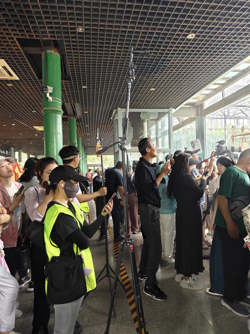 为了引导游客文明参观游览,园方在场馆里还加设了栏杆,减少游客拍玻璃、大声喧哗吸引动物等不文明行为的发生。记者看到,现场还有园区工作人员及保安,随时提示主播及游客文明游览,为大熊猫健康生活创造条件。几位主播也主动担任起文明游园宣传员的角色,不时地提醒游客不要使用闪光灯、不要拍打玻璃。