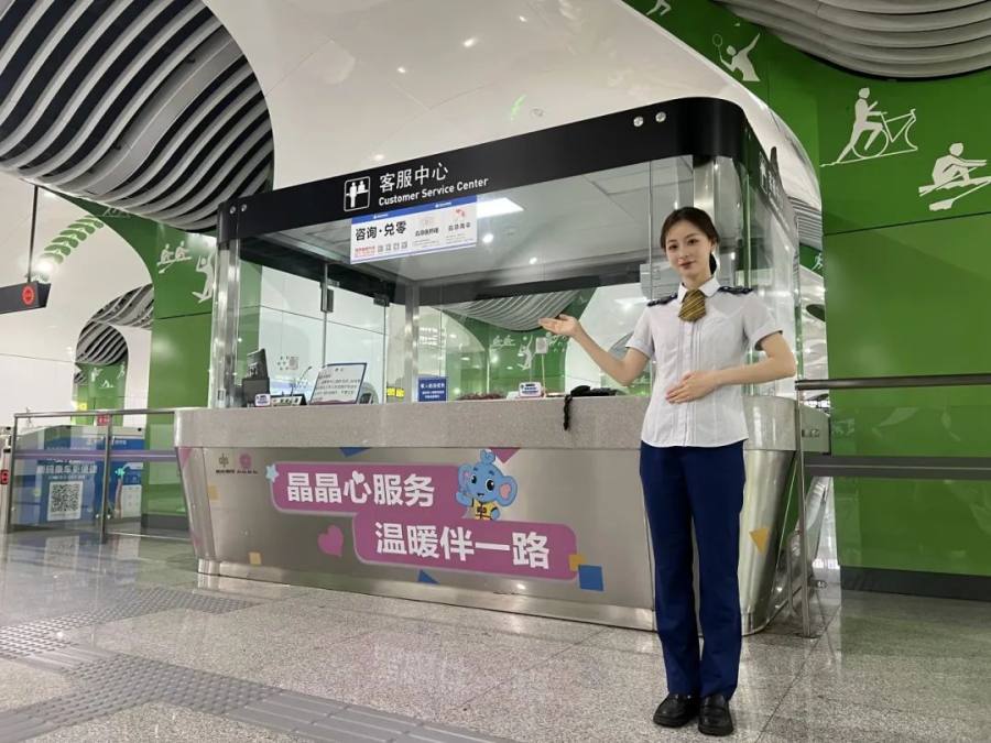 5月25日,地铁省体育中心站增设晶晶服务台、爱心通道、爱心医药箱、爱心雨伞等。在站厅和出入口多样化增设站内目视化指引标识,关键岗位设置“专人专岗”,助力市民乘客出行。