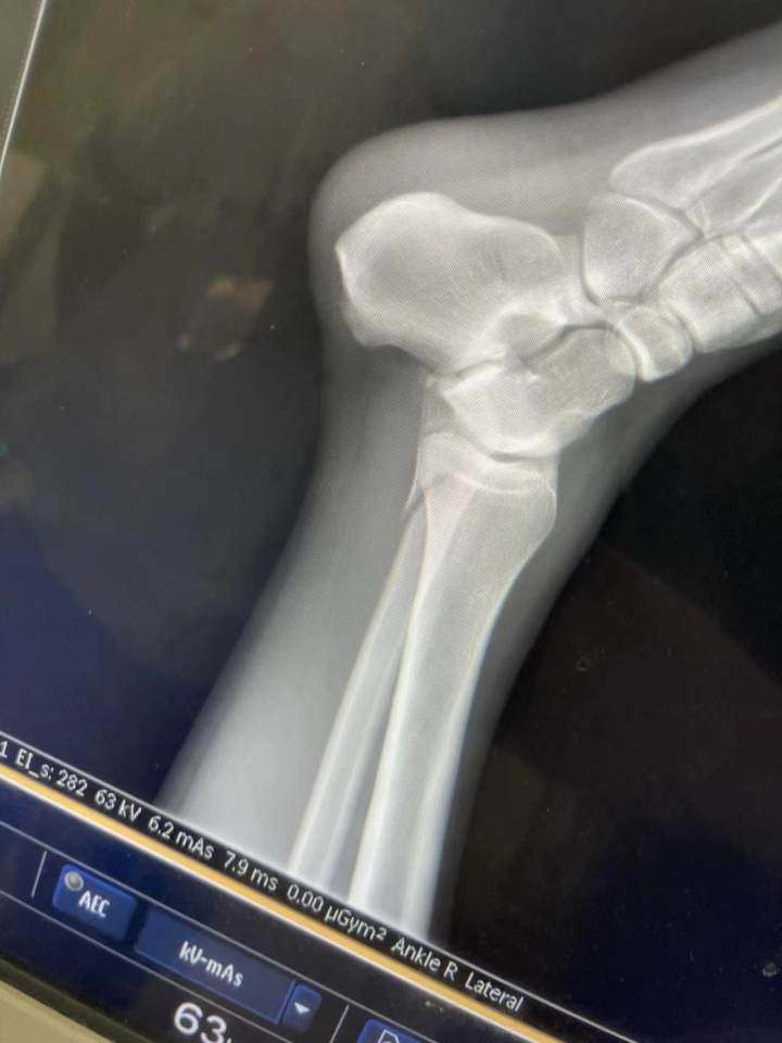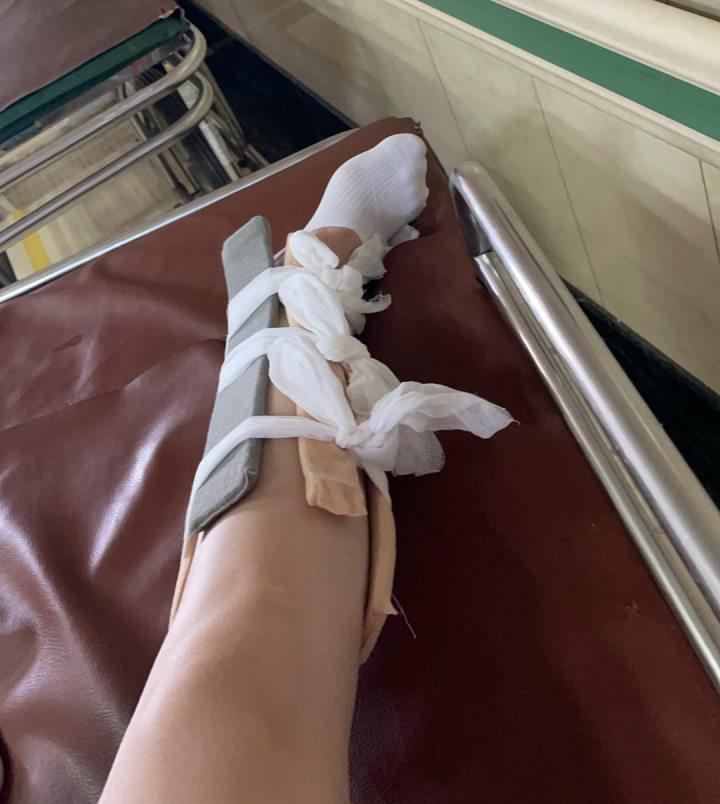 “我就把躺的位置让给她,她的腿骨折了,我是踝骨受伤。现场的工作人员让我们到二级以上的公立医院治疗,然后报销。