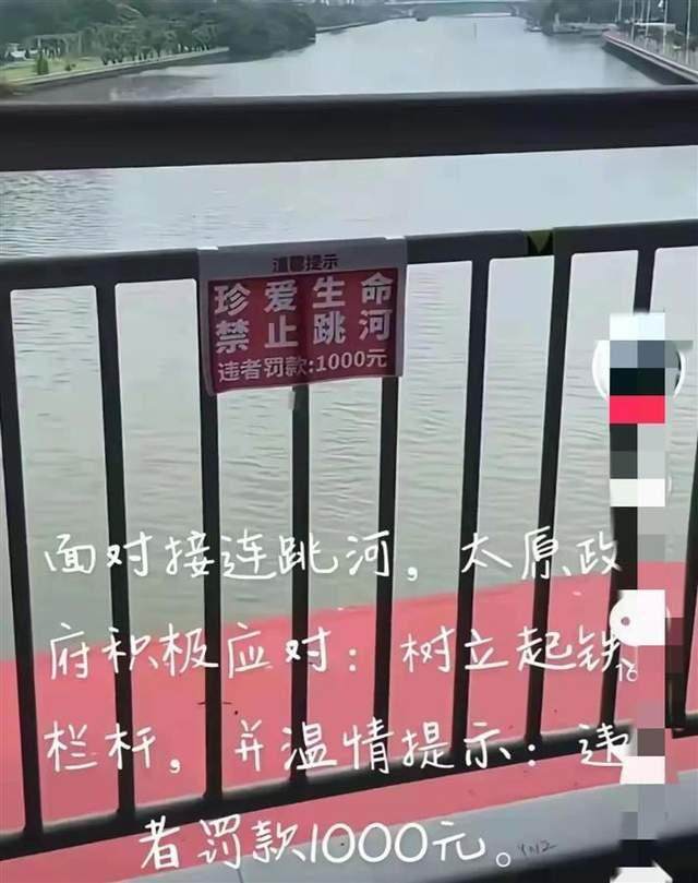 太原回应大桥上挂跳河罚款警示牌:已介入核查