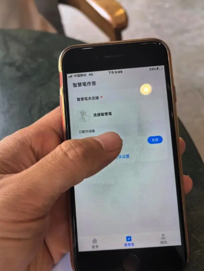 在家中使用智慧笔时,需要家长打开“一教一学”App,通过蓝牙与笔配对连接后,通过手机接收信号再上传
