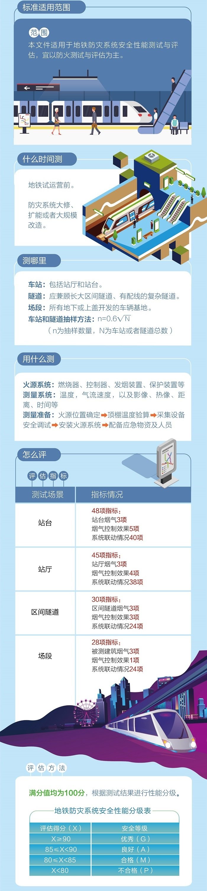 提出了地铁防灾系统安全性能测试“适用范围”“测哪里”“用什么测”“怎么测”“怎么评”等相关内容。