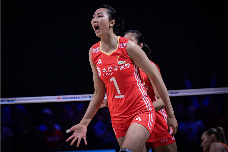 在第三局前,主教练蔡斌接受现场采访时表示:“一点点找到节奏了,接下来会更大胆地攻击对手。”在本局局中阶段,女排姑娘们逐渐找到攻防节奏,开始拉开比分差距。一度中国女排15比10领先,但在荷兰女排第二次暂停后,扭转了颓势,将比分扳为18比18,再次进入拉锯战。关键分上,李盈莹没有手软,稳住了局势,最终副攻袁心玥背飞得分,球队以25比23同样的比分惊险拿下。