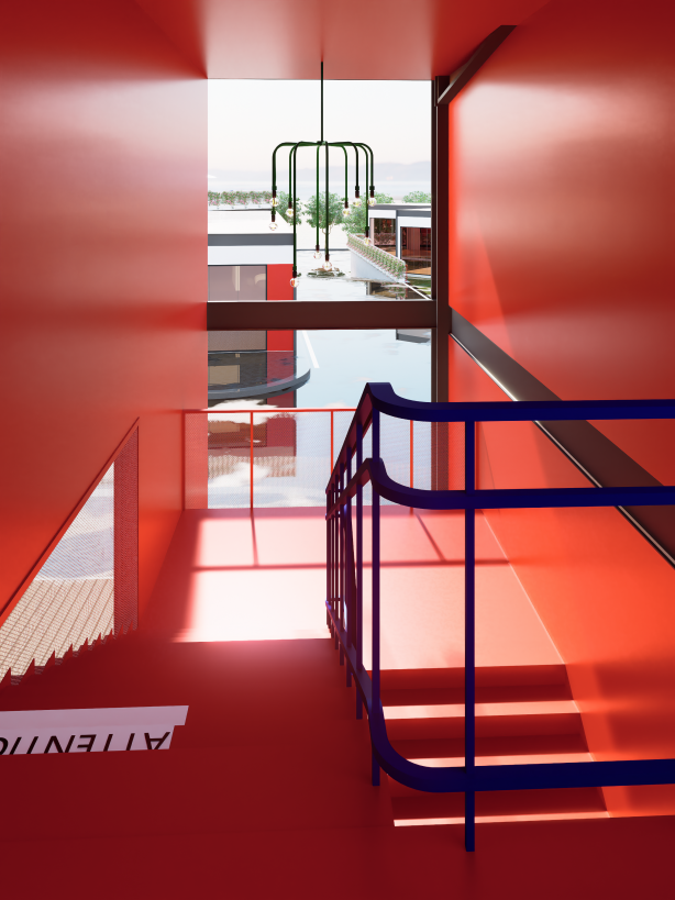 空间上,用平台和连廊打通了流线,串联项目各空间,使每个空间都与外部有特定的联系,增强了场景体验的互通性与丰富性。