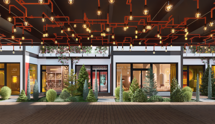 布局上,采用了开放式和盒子街区相结合的空间布局,园区商铺融合室内室外场景与活动,“街巷感”相互交错,店铺进退组合,最大程度模糊了店铺与公区的物理边界,拉近了人与人之间的距离,也拉近了人与场景的距离,营造出自由、舒适的氛围。