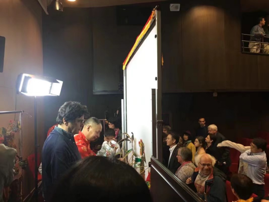 “化干戈为玉帛!”,当《龙凤呈祥》戏剧推向高潮,一声声喝彩传来,熟悉的“骚动”声传来,陈雨伦心中的石头终于落地。演出后观众们纷纷上前观看艺人手中的皮影人偶,对皮影的制作过程、肢体结构、表演手法等表现出了极高的热情与关注。