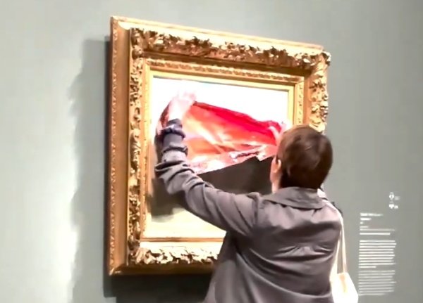 莫奈画作惨遭张贴不干胶海报,肇事者被警方逮捕