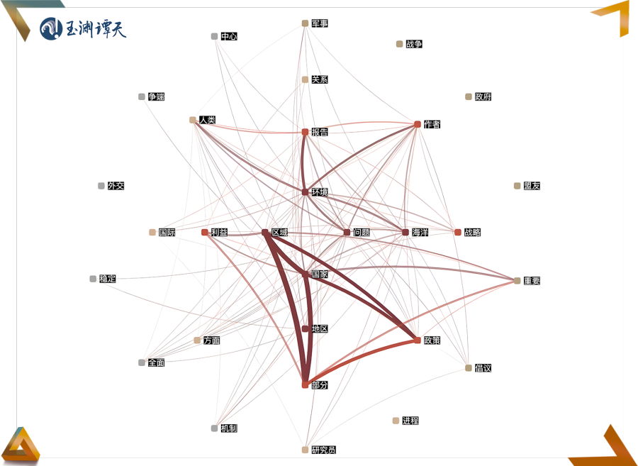 谭主集纳了东盟10国的44家智库今年以来有关南海的报告,发现“区域”“地区”“利益”等关键词,处于各国讨论的核心。相反,“争端”“战争”等,则处在相对边缘的位置。