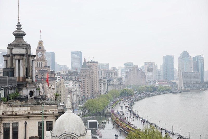 在久事国际艺术中心露台参观,俯瞰外滩。