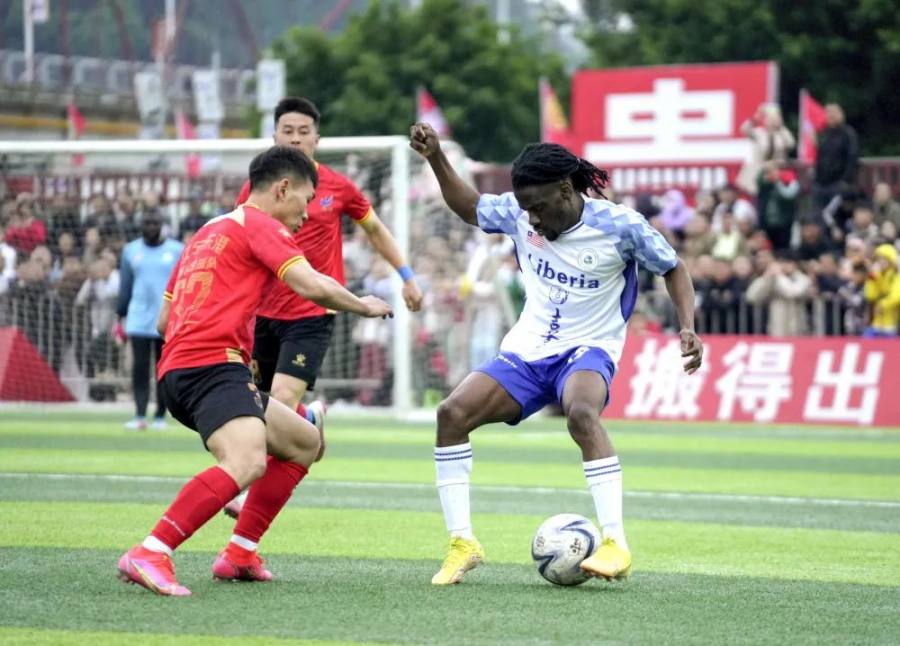 香港明星足球队、澳门职工足球队倾情加盟,助力榕江县打造贵州融入粤港澳大湾区“桥头堡”主阵地;2023年“村超”与英超牵手合作,2024年迎来法国青年代表队、利比里亚社联足球队等国外球队,非洲贝宁复制“村超”模式。通过足球这一全球性语言,“村超”正在不断联动世界、扩大“朋友圈”,让更多人看到了这个曾经的贫困县如今焕发出的勃勃生机。