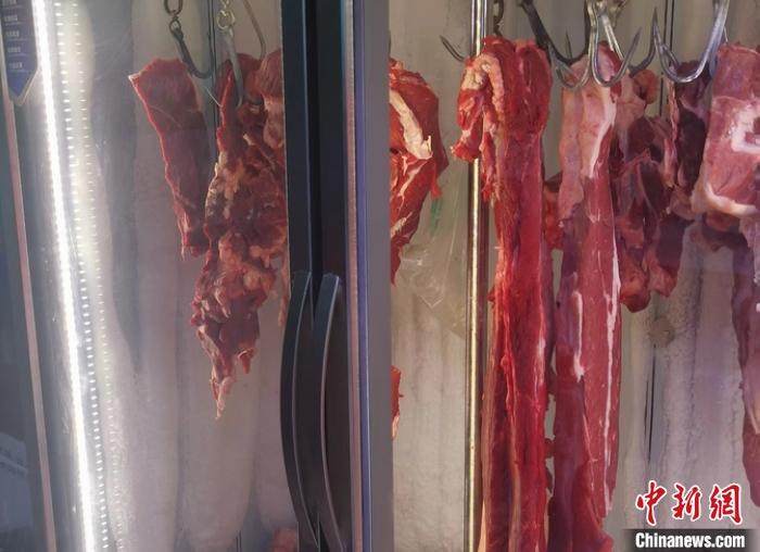 图为菜市场里售卖的牛羊肉。 中新网 谢艺观 摄