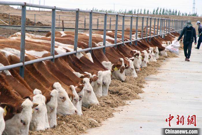 资料图:新疆阿勒泰市的一家畜牧养殖企业的育肥牛。 孙亭文 摄