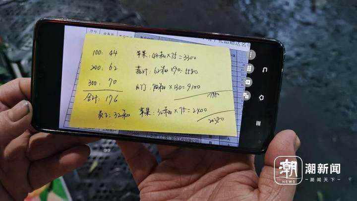 “有一位老顾客订了八箱‘妃子笑’,还有一笔大订单,客人十点就来提货。”做了二十多年水果生意的陈大姐,手上拿着厚厚一叠订货单,而这仅仅是她半小时的“战绩”。