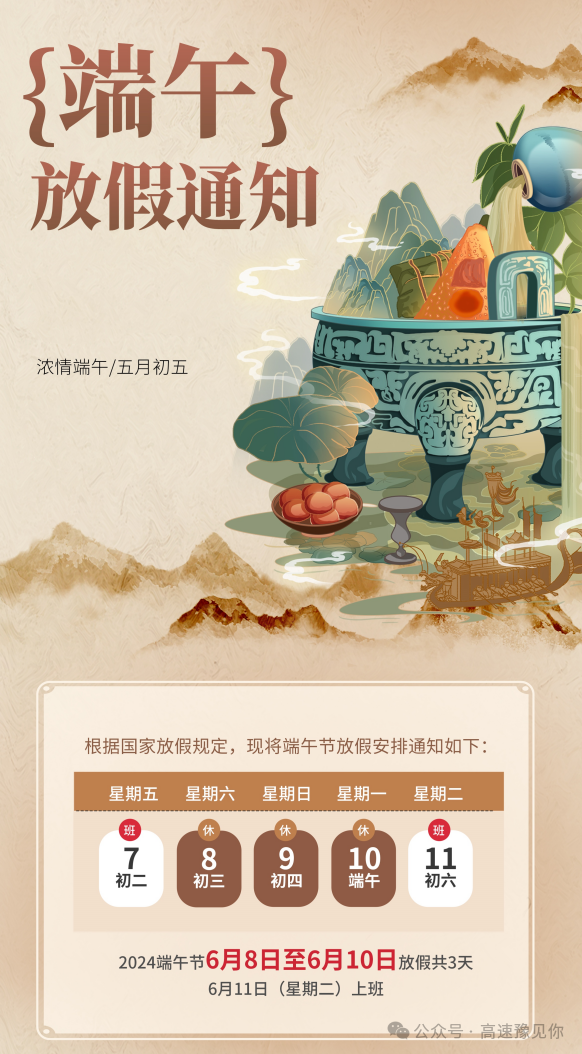 2024年端午节放假时间为:6月8日(星期六)至6月10日(星期一),共3天。