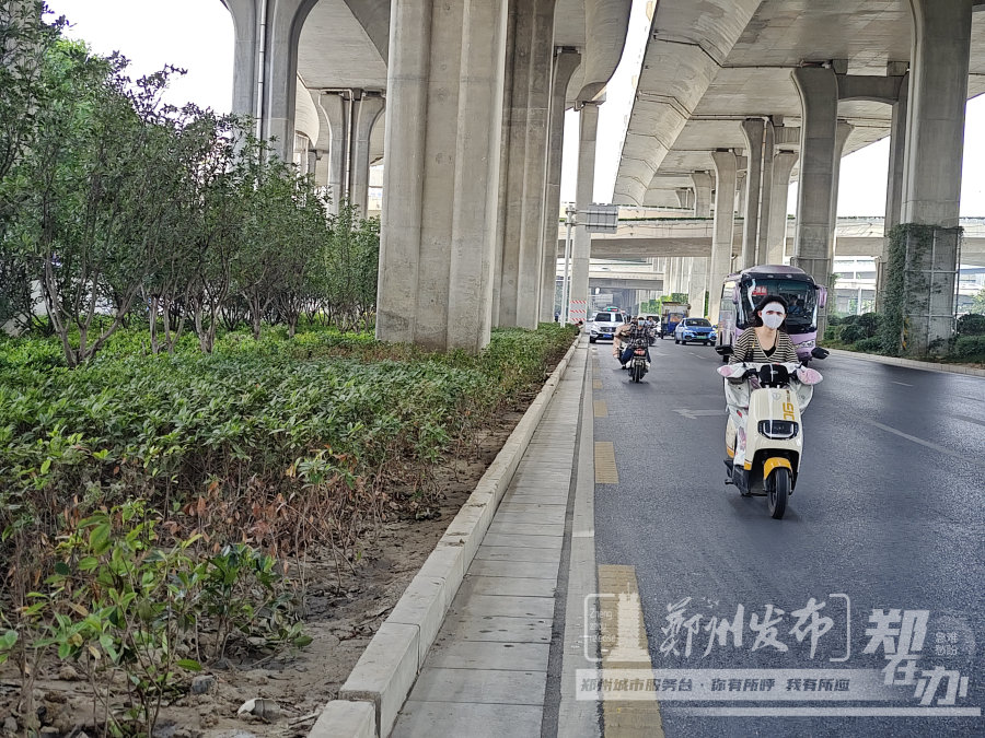 市民任先生说,该区域为两条城市主干道的交汇处,路口东南角又有郑州客运南站,平时人流量、车流量较大,周边交通状况复杂,骑车在机动车道里人车混行,很容易发生交通事故,希望相关部门尽快开辟入口,让骑车市民感受到更多安全感。