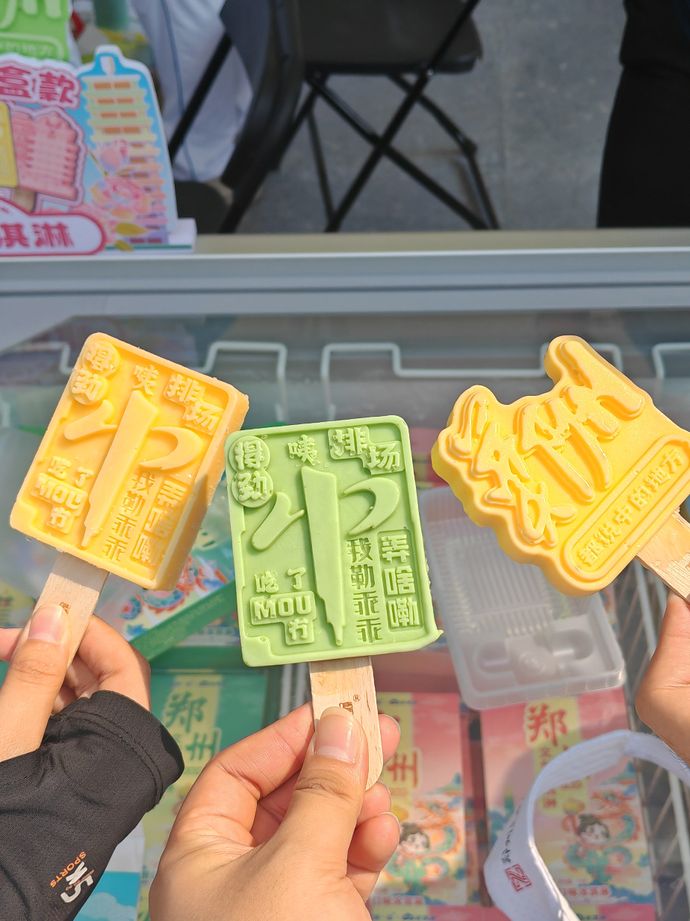 文创市集相关负责人李炎告诉记者,这些“郑州文创冰激凌”既有像二七塔、“大玉米”等郑州地标建筑的造型,也有印上“弄啥嘞”“得劲”等郑州方言造型的,让参赛的国内外选手在防暑降温享受美味的同时,也能了解郑州的风土人情,感受特色中原文化。“今天开赛的是激光跑世锦赛,购买射击、跑步徽章的人群比较多。等现代五项世锦赛开赛后,估计买击剑、游泳、马术、跑步、射击全套徽章的人群就会增多了。”李炎说。