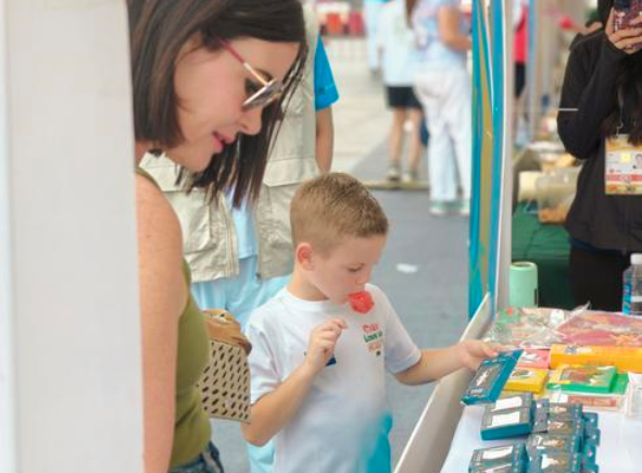 记者在位于郑州奥体中心体育场二层外北广场的“郑州双世锦赛”官方指定文创市集看到,从毛绒玩具到纪念徽章,从冰箱贴到行李牌,各种赛事周边商品琳琅满目。“早就听说‘郑州双世锦赛’要在郑州奥体中心举办了,我家就住在这附近,今天没事过来看看比赛,没想到还能买到这么精美的赛事周边文创产品,太开心了!”张爽抱着“阿中”“阿源”笑得合不拢嘴,“很多朋友看到我晒的朋友圈,说端午节假期也要过来买呢!”