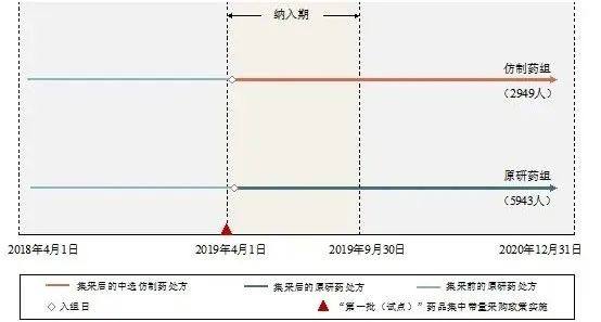 为了回答上述问题,笔者基于2018-2020年天津市真实世界医疗大数据,针对第一批集采降压药氨氯地平(该批次集采中约定采购量最大的品种,也是最常用的钙通道阻滞剂类降压药),对比了集采后由原研换用中选仿制药的患者与继续使用原研药的患者的健康情况。