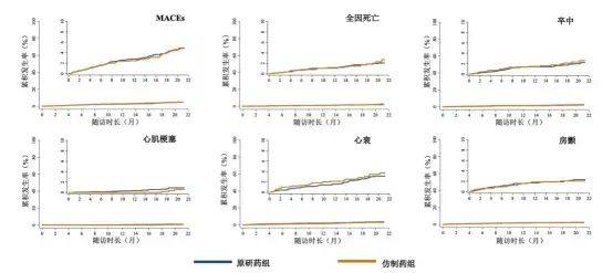 图2. 原研与仿制药组患者的心血管事件和死亡的发生率曲线