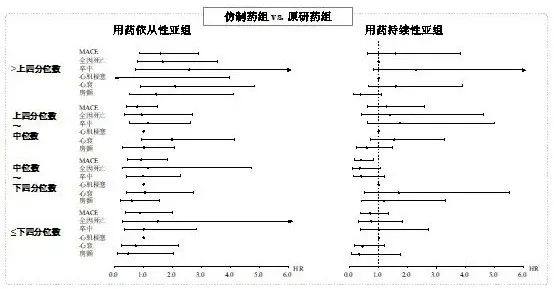 图4. 亚组分析:原研与仿制药组患者的心血管事件和死亡的发生风险比