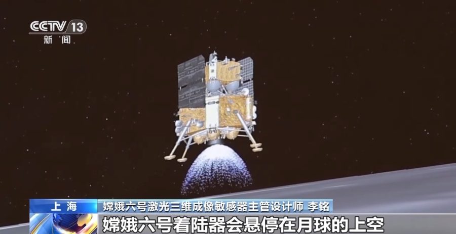 嫦娥六号激光三维成像敏感器主管设计师 李铭:在距月球100米左右的一个距离的时候,嫦娥六号着陆器会悬停在月球的上空,我们的激光三维成像敏感器会开机工作,在0.25秒的时间内对月球30度乘30度这样一个范围的地形进行精细的三维成像探测,可以获得五厘米的精度,作用是可以寻找一个平坦的安全着陆区,把嫦娥六号降下去,防止出现坑或者是障碍。