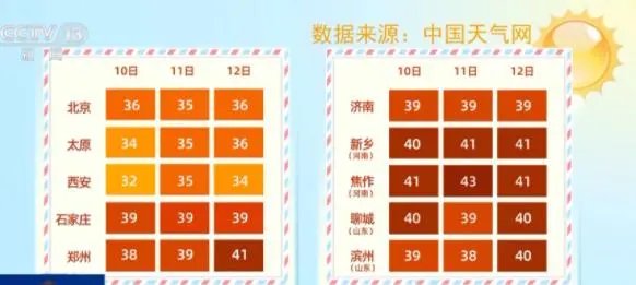 综合中国天气网发布的主要城市高温日历和天气预报,未来三天,北京的最高温度可能连续三天超过35℃,省会级城市中,石家庄、郑州、济南也会出现连续高温,郑州12日的最高温度将冲击40℃。
