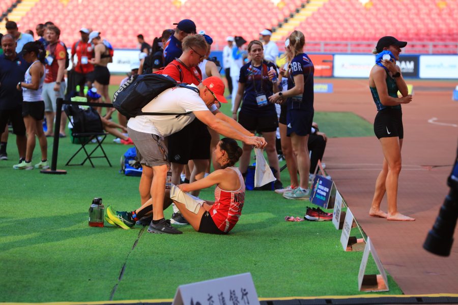 比赛当天郑州天气炎热,最高气温近40摄氏度,为了保证运动员身体健康,更好地发挥水平,组委会特意调整了赛程,将激光跑项目改在了下午4:30开始,此时已经“躲过”了气温最高的时候,同时也特别加强了医护力量和后勤保障。