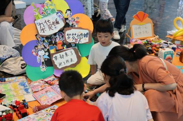 艺术展厅和公共空间的主题展览丰富多彩,“东方雅韵,文化非遗”作品展&中原古代乐器展对观众全天开放,观众自发跟着讲解队伍,了解厚重的传统文化和匠人精神,感受中原千年文化之根。除此之外,大厅特别策划了一系列有趣多元的文化体验活动。非遗文化体验市集,聚集不少观众排队等候,体验漆画、糖画、面塑、竹编、拓印、制香等非遗项目;儿童市集各个摊位开张“营业”,大厅叫卖声此起彼伏,烟火气十足。值得期待的全民“艺”起秀,歌剧经典唱段《灿若星辰的目光》,嘹亮的歌声飘扬在各个角落。紧接着悠扬的小提琴独奏、架子鼓、电吉他以及豫剧经典唱段等节目轮番上演,观众掌声不断,点燃全场热闹气氛。NPC互动闯关集章有奖的活动,将观众的参与热情推向高点。每位NPC都被观众“围堵”答题集章,不仅调动了观众的学习热情,也能在游戏中发现和喜爱传统非遗文化的无穷魅力。