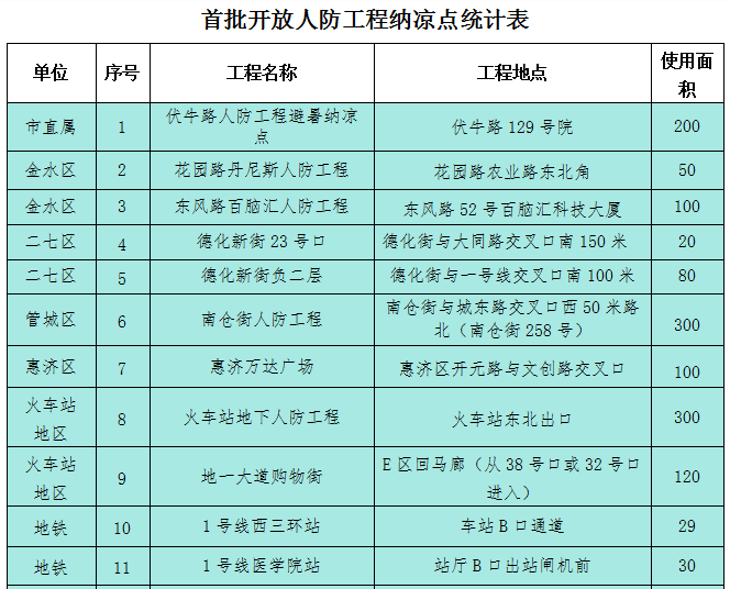 郑州已开放22处人防工程纳凉点