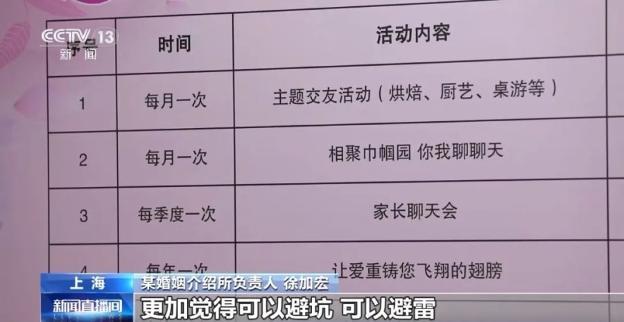 上海某婚姻介绍所负责人 徐加宏:《指引》出台以后,来我们机构咨询和报名的人其实是在增加的。消费者也更加放心,因为原来是一直担心会有婚托或者退费困难的坑,他们现在也更加放心,更加觉得可以避坑、避雷。