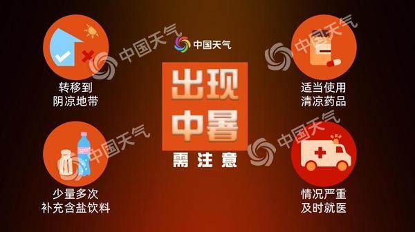 如果出现中暑症状,应立即转移至阴凉地带,少量多次补充含盐饮料,适当使用清凉药品,情况严重需及时就医。