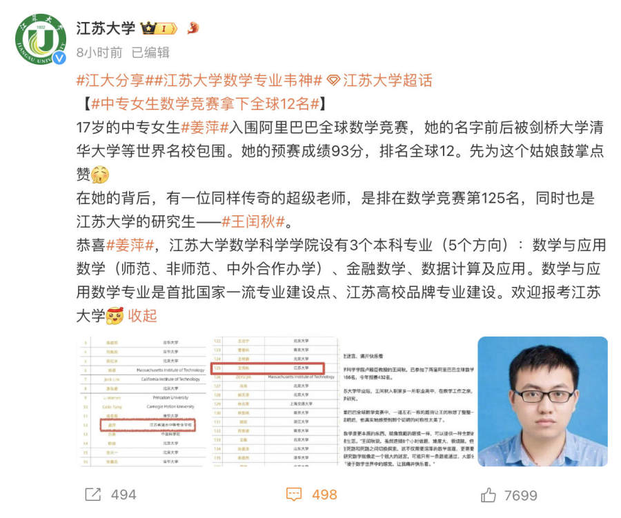 中专生入围全球数学竞赛决赛,江苏大学、浙大招办:欢迎报考