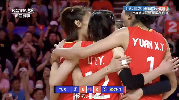 6月15日,世界女排联赛中国香港站继续进行,中国女排在先丢两局的情况下,连追三局,以3∶2逆转战胜土耳其队,取得三连胜。