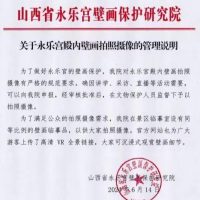 北青报记者注意到,山西省永乐宫壁画保护研究院官方网站近日发布了《关于永乐宫殿内壁画拍照摄像的管理说明》,其中称:为了做好永乐宫的壁画保护,该院对永乐宫殿内壁画拍照摄像有严格的规范要求。确因讲学、采访、直播等活动需要,可以向该院申报,经审核批准后,在文物保护人员监督下予以拍照摄像。