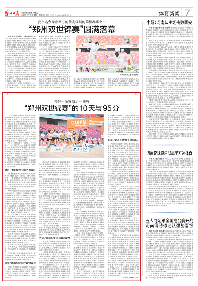 “办好一场赛,提升一座城。”6月7日至6月16日,因举办2024年激光跑世锦赛和2024年现代五项世锦赛暨巴黎奥运会现代五项资格赛,郑州在全国开创了同一座城市连续举办两项世界锦标赛的先河。举办“郑州双世锦赛”的10天时间里,“天地之中”又一次吸引了全国乃至世界的目光,绽放出魅力无限的“郑”精彩。